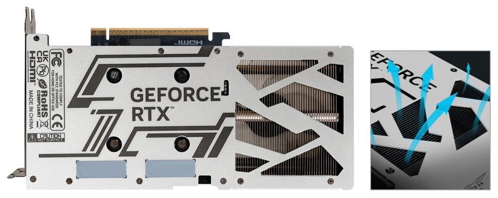 Refined through extensive aerodynamic simulations, GeForce RTX 50 series GPUs introduce an all-new thermally efficient design. With 7 larger WINGS 3.0 fan blades, it delivers enhanced air pressure. The upgraded fans with ring blades also improve cooling efficiency that quickly cools off components and boosts durability.